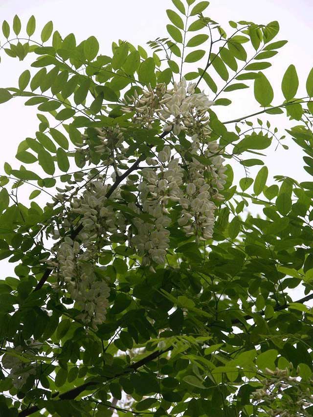 刺槐,又名洋槐。拉丁文名:Robinia pseudoacacia L.豆科、刺槐屬落葉喬木,樹皮灰褐色至黑褐色,淺裂至深縱裂,稀光滑。 原生于北美洲,現被廣泛引種到亞洲、歐洲等地。刺槐樹皮厚,暗色,紋裂多;樹葉根部有一對1~2mm長的刺;花為白色,有香味,穗狀花序;果實為莢果,每個果莢中有4~10粒種子。刺槐木材堅硬,耐腐蝕,燃燒緩慢,熱值高。